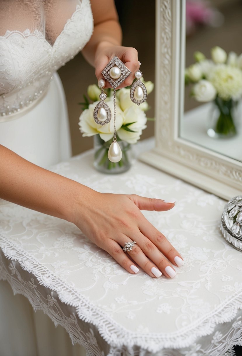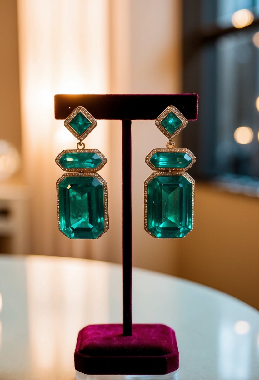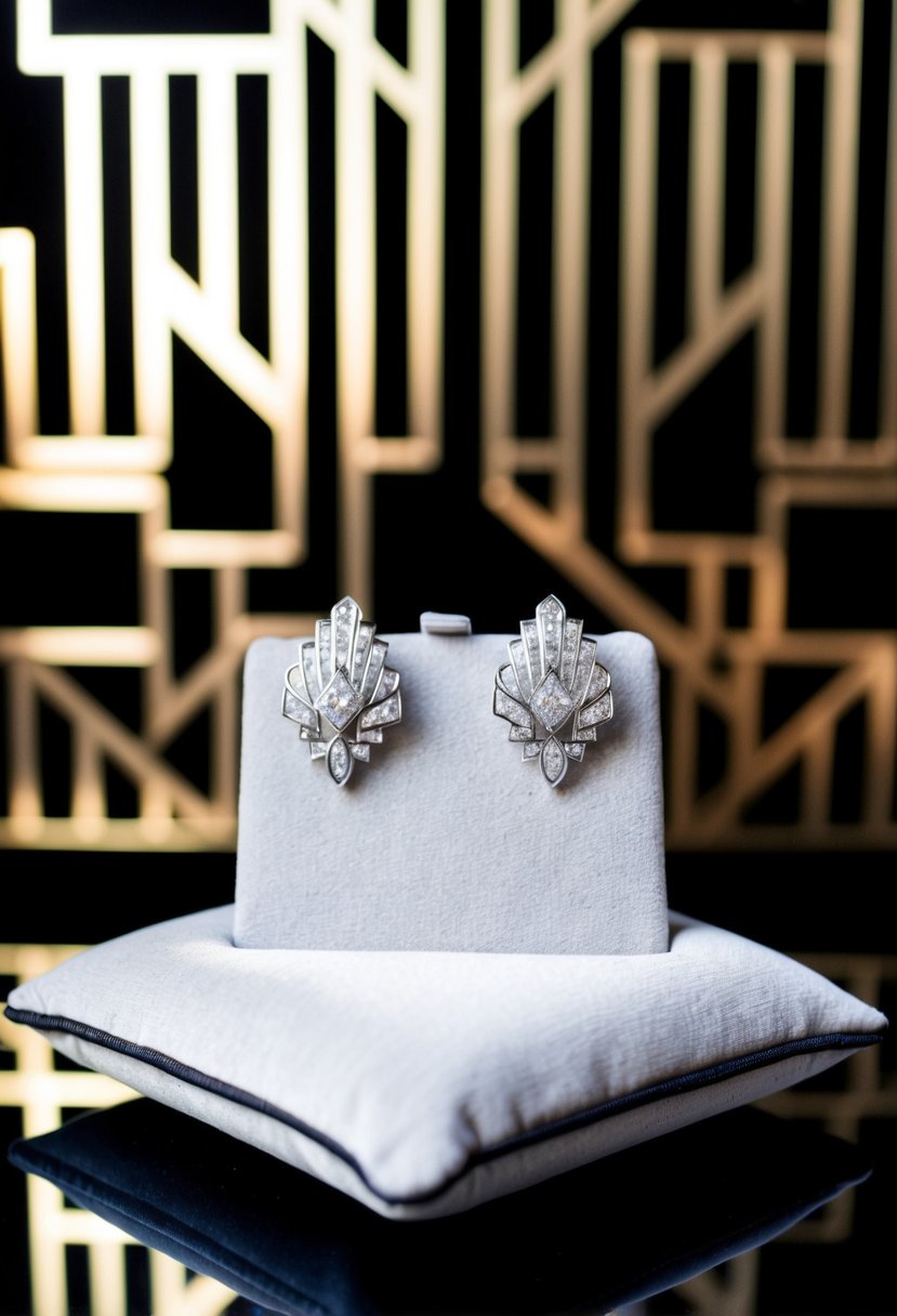 These earrings often feature intricate designs that reflect the Art Deco style. They can perfectly complement your wedding attire and make you feel special on your big day.
