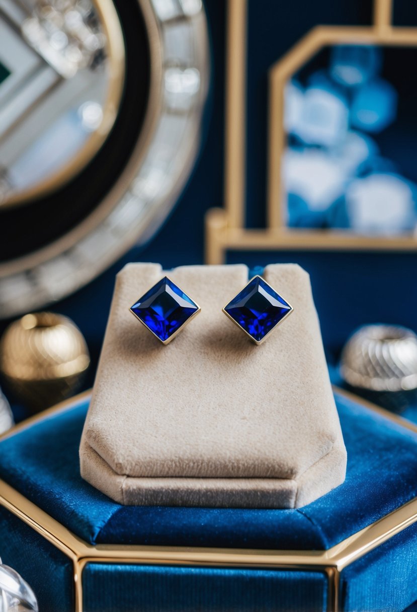 Geometric sapphire studs can make a stunning choice for your wedding day. Their unique shapes and deep blue color add elegance and charm to your bridal look.