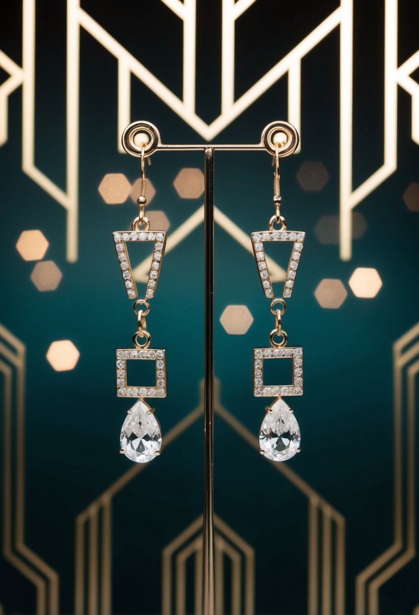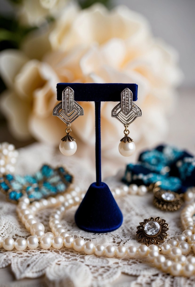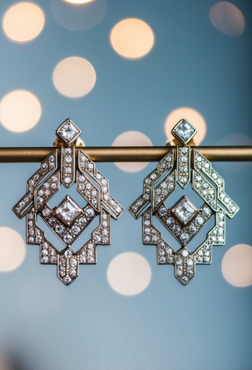 These earrings often feature bold geometric designs that reflect the Art Deco style. You’ll find options with intricate details and sparkling crystals to really stand out on your special day.