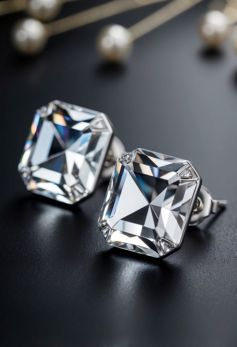 Clear-cut crystal earrings are a stunning choice for your wedding day. Their sharp, angled designs catch the light beautifully, adding a sparkle to your look.