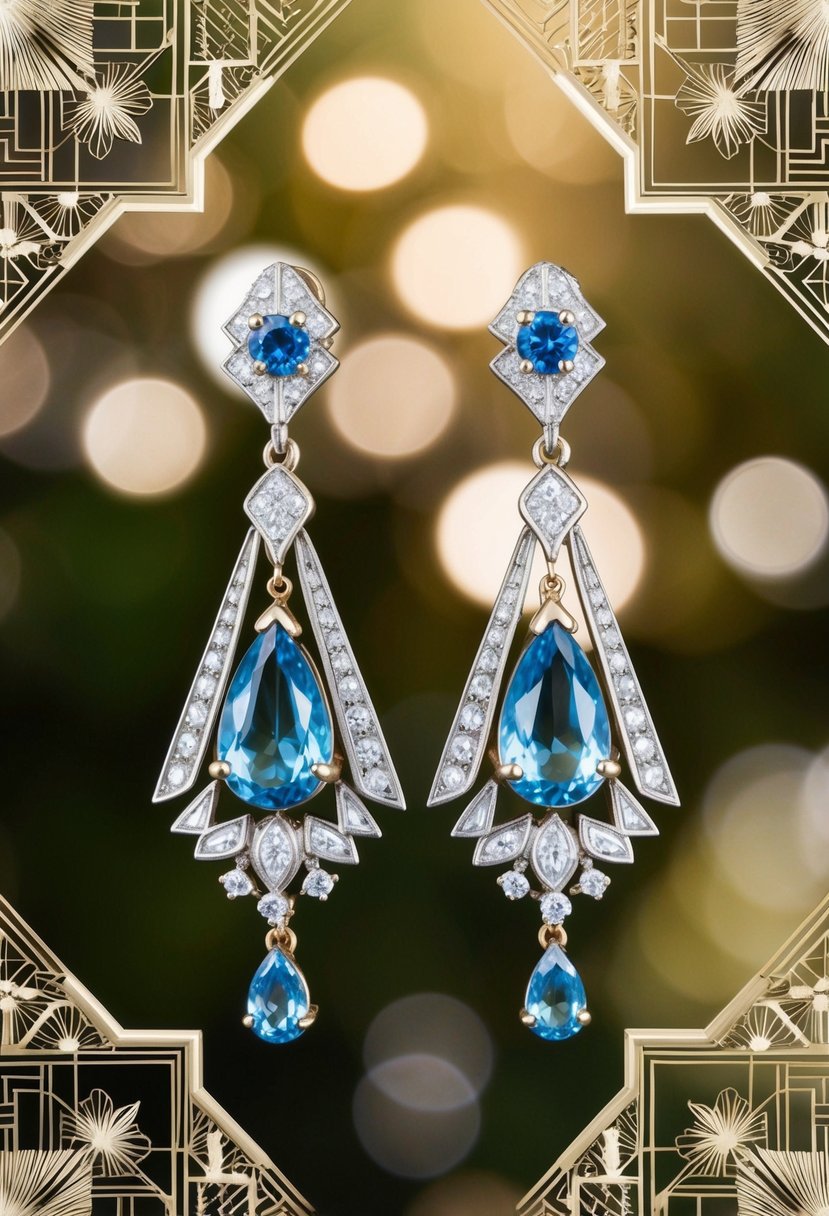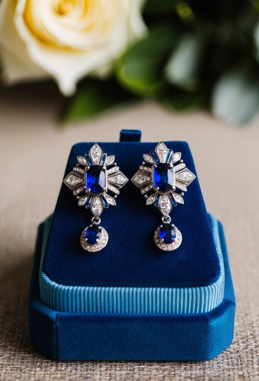 A Blue Accent Art Deco set can add a stunning touch to your wedding look. Consider earrings with blue sapphires or similar stones. The deep blue hue not only looks elegant but also fits the “something blue” tradition perfectly.