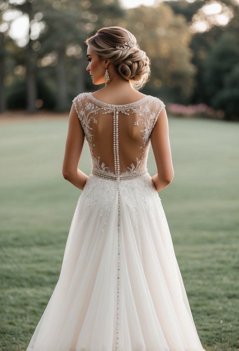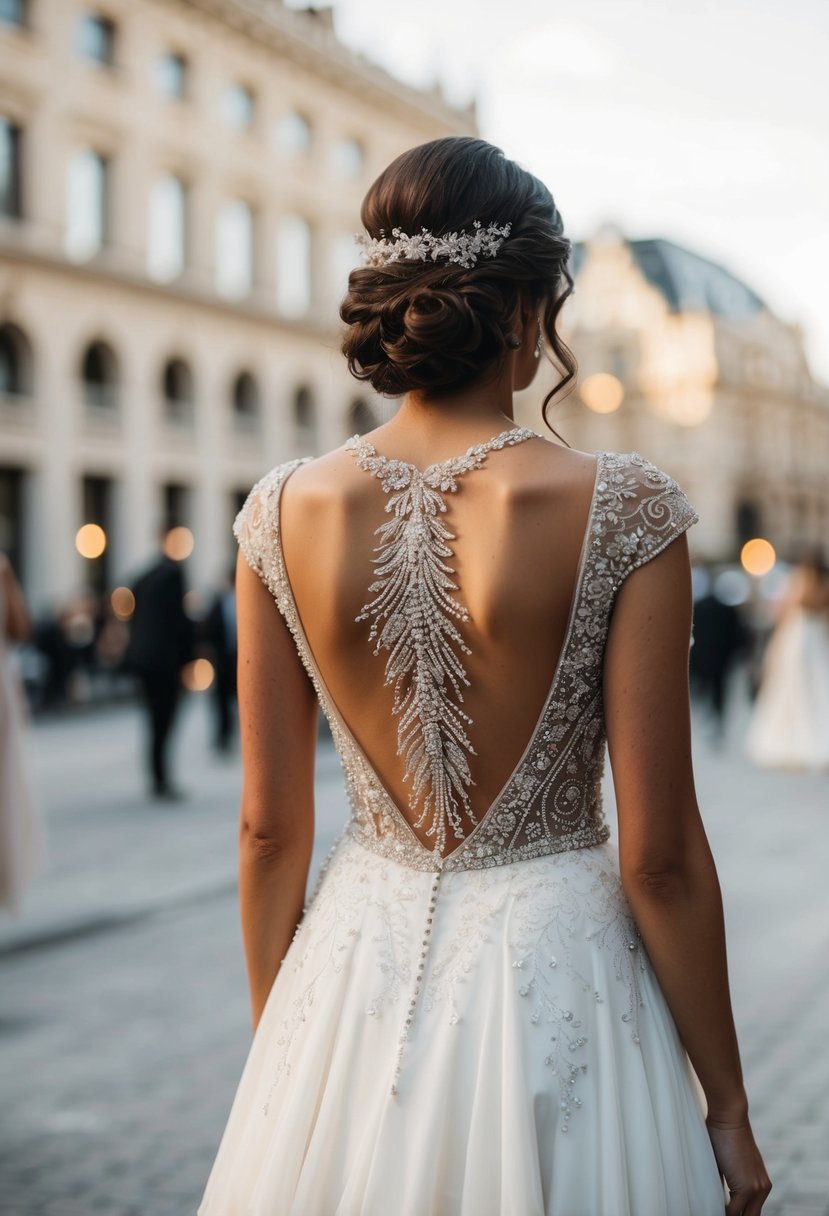 Beaded back details can add a touch of elegance to your wedding dress. These accents catch the light beautifully, making your gown sparkle as you move.