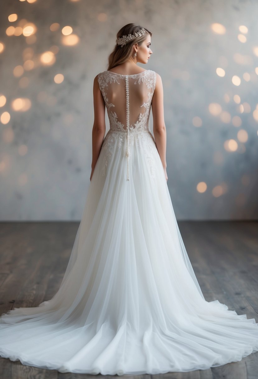 A sheer illusion back adds a stunning touch to your wedding dress. It creates the look of bare skin while providing support and coverage.