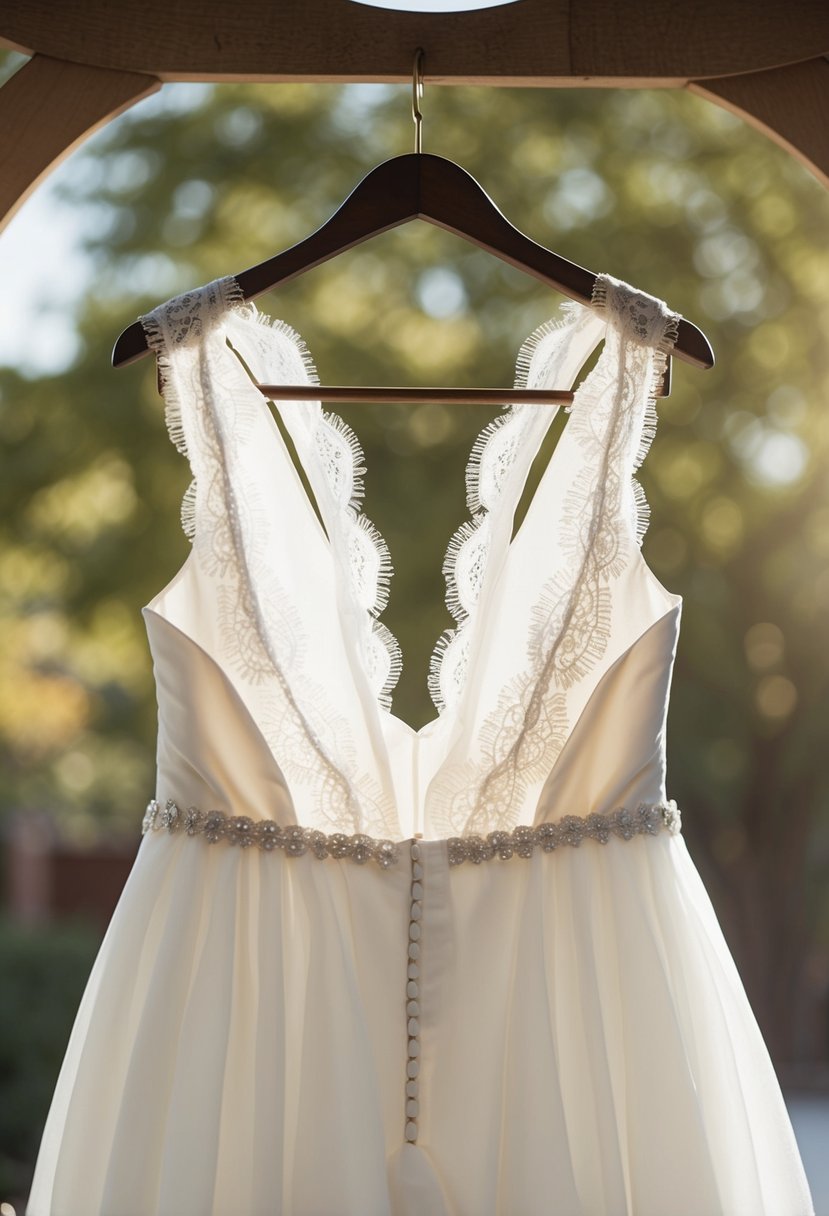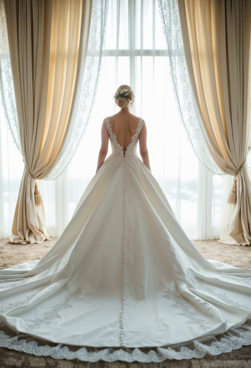 A scalloped lace edge can add a lovely touch to your wedding dress. This design creates a soft, romantic look that enhances the overall style.